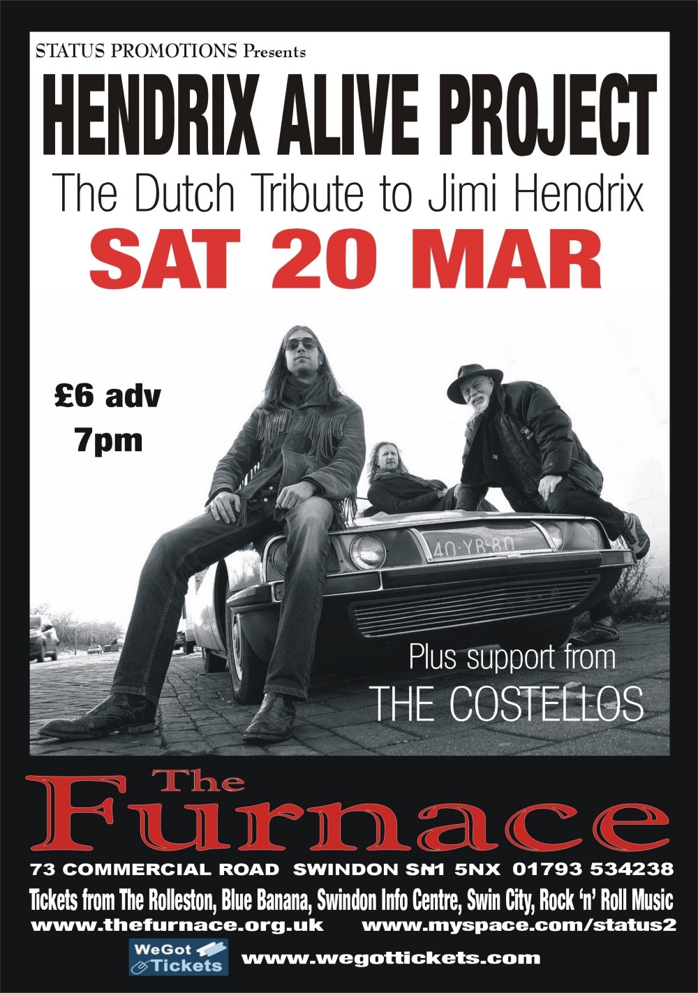 With effect of coming friday morning Januari 15, tickets will be available for the Jimi Hendrix tribute Show of HENDRIX ALIVE PROJECT: www.hendrixaliveproject.com on saturday ovtober 16, 2010, at the formar Marquee Club: London O2 Academy 2 Islington. tel.number:Box Office 0844 477 2000 | ||||||||||||||||||||||||||||||||||||||||||||||||||||||||||||