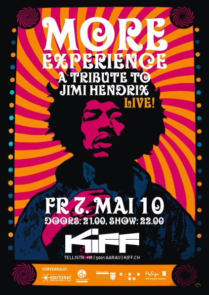 ***** KONZERT TIPP 2x 2 Tickets zu gewinnen! ***** Freitag, 07. Mai 2010 @ KiFF Aarau Doors: 21.00, Show: 22.00 Eintritt: 25.-/20.-MORE EXPERIENCE (CH) " A TRIBUTE TO JIMI HENDRIX and DJ PINO Q. (from THE DOORS CELEBRATION) |