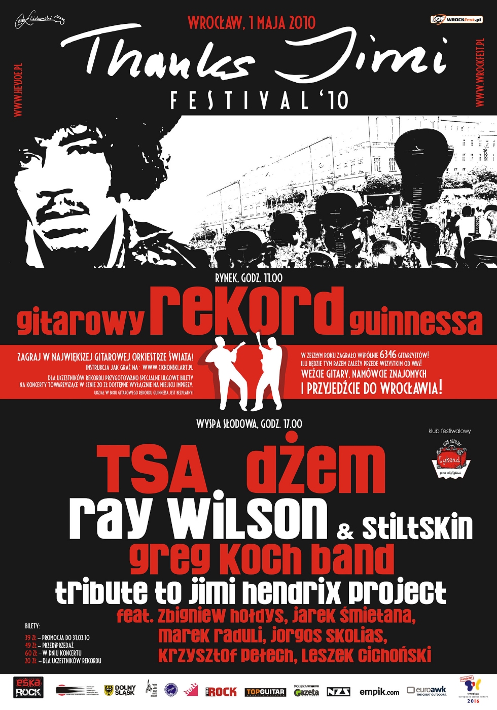 1st of May: World Guitar and Jimi Day The 8th edition of the Thanks Jimi Festival took place once again on May 1st in the Wroclaw market square. This year saw 4,597 guitarists who played seven songs together under the direction of Leszek Cichonski including Guinness World Record attempt song, "Hey Joe". This year fell short of last year's success of 6,346 but was still over double the previous record. Still, the event is considered a success as the real goal is to celebrate the power of music and enjoy the truly unique atmosphere